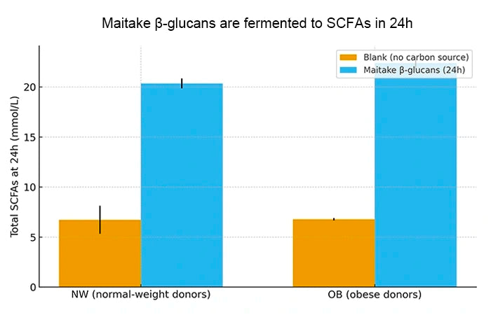Maitake β-glucans (in-vitro, human fecal model) ā More SCFAs, ācalmerā gut chemistry*