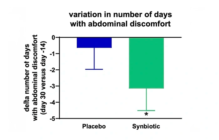 Synbiotic (with B. lactis) ā Fewer Days with Abdominal Discomfort in 30 Days*