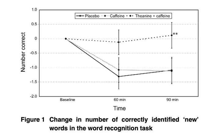 Core take-away: In a double-blind, randomized, crossover study, 100 mg L-theanine + 50 mg caffeine improved speed and accuracy on an attention-switching task vs placebo, and reduced distractibility on a memory task at 60ā90 minutes.